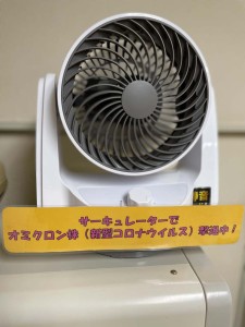 - サーキュレーターを2台から4台に増設し室内の空気を強制循環